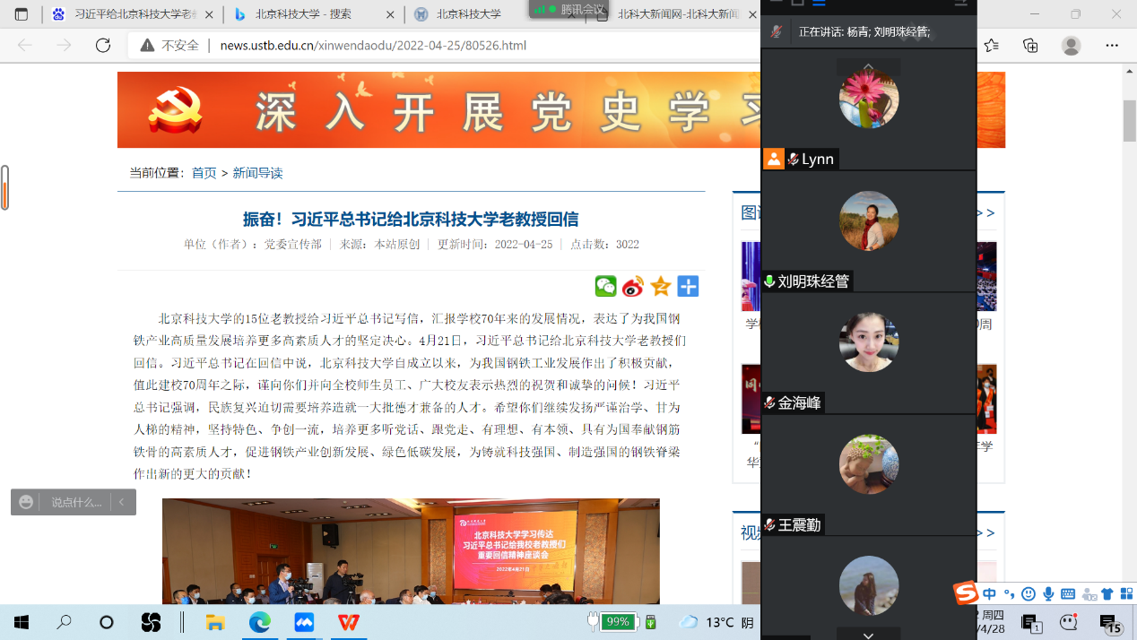 2022年4月21日,中共中央总书记、国家主席、中央军委主席习近平在学校建校70周年前夕给北京科技大学老教授们回信,充分肯定了学校自成立以来为我国钢铁工业发展作出的积极贡献,对培养更多高素质人才,促进钢铁产业创新发展、绿色低碳发展提出殷切希望。为深入学习贯彻习近平总书记给学校老教授重要回信精神,根据学校党委统一要求和部署,8455新葡萄场网站党委高度重视,及时组织学院全体师生党支部以线上、线下相结合的学习方式开展学习。